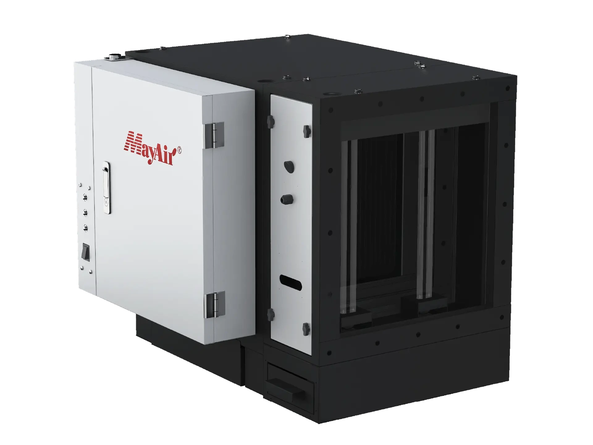 The Fusion Series is designed for installation at the terminal sections of kitchen exhaust systems in the food and beverage industry. These products provide advanced treatment of cooking fumes and odors, utilizing a combination of physical impact and interception, high-voltage electrostatic ionization, UV decomposition and oxidation, and activated carbon adsorption.